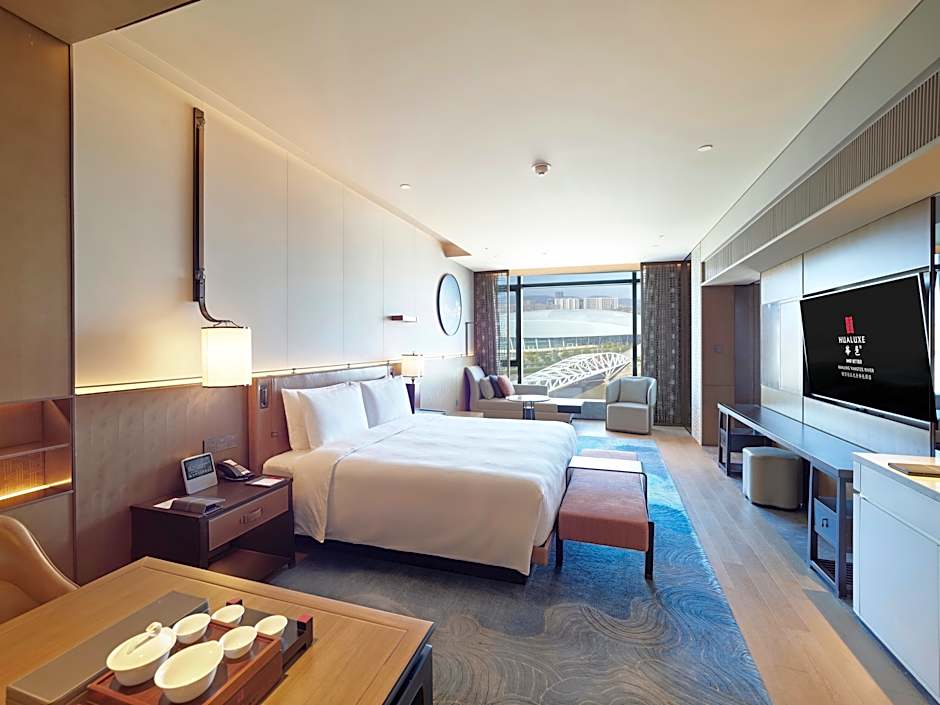 1 King Premium Lounge Access River View is 431 square feet and includes a king-size bed 150-183 width and is Wheelchair-accessible.
